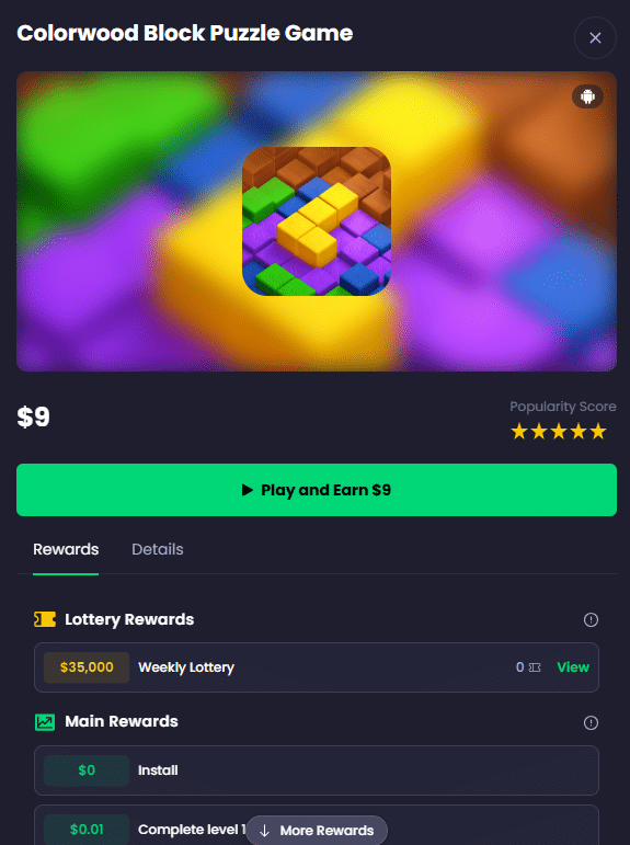 If you want to play puzzle games for money, then Colorwood Block is worth checking out.