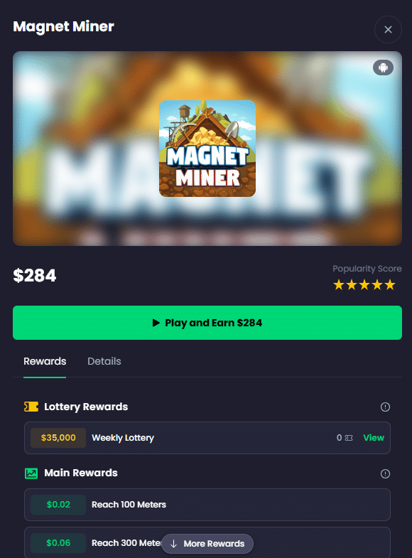 Magnet Miner pays over $200 on Freecash currently with all of its milestones.