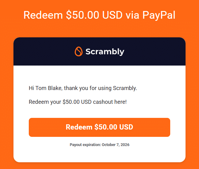Scrambly isn't a scam and is one of the highest-rated rewards companies. The website has dozens of positive reviews from other users on Trustpilot, and it lets you earn PayPal cash and gift cards in your spare time with a variety of earning options. I've also redeemed over 40 rewards with Scrambly and have always gotten paid on time.