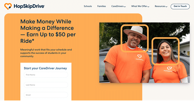 With HopSkipDrive, you get paid to to help transport students and older adults as a CareDriver. And you can actually earn up to $50 per trip that you drive!