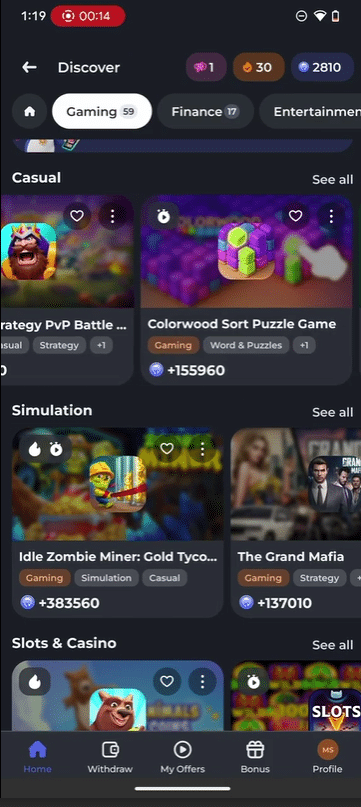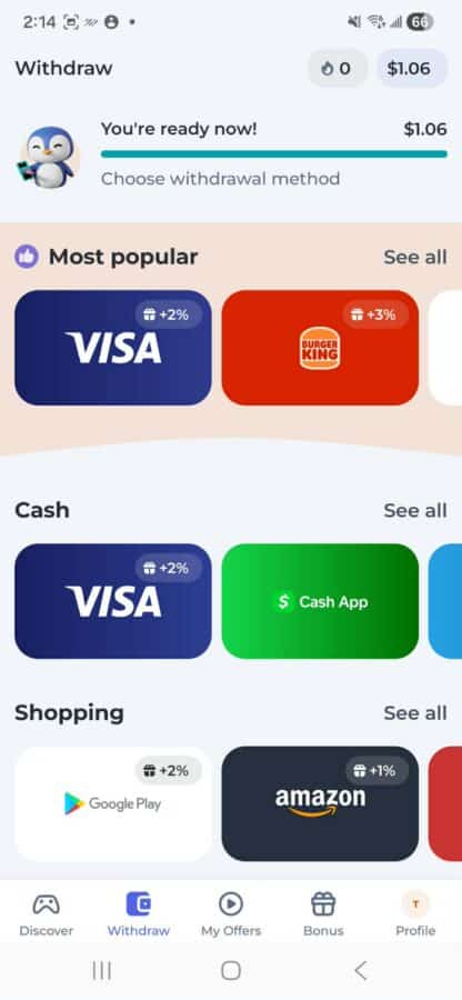 You can also earn by completing other offers, like trying out cash game apps, signing up for FinTech products, and much more.
