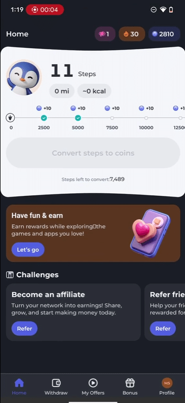 PenguPace lets you convert your daily steps into coins, which you can redeem for rewards like PayPal cash and gift cards. Plus, the app also lets you earn by playing games and completing other cool offers. Overall, it's a legit and fun rewards app, and I even cashed out $10 to PayPal with it without any issues.
