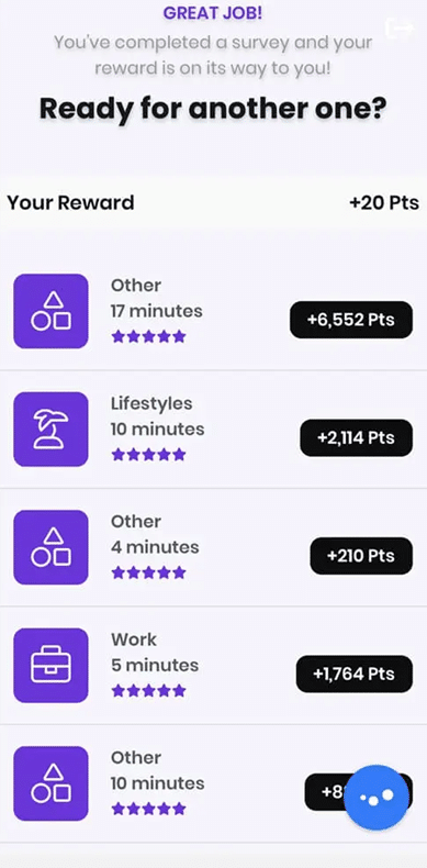 What's nice is that many surveys only take one question or a few minutes, which is shorter than most cash survey sites. Although I've found the highest paid surveys take a lot more time.