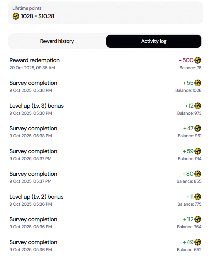 You need 500 points to redeem a $5 reward. I like how straightforward the point system is, and a $5 redemption minimum is quite decent for the paid survey space.