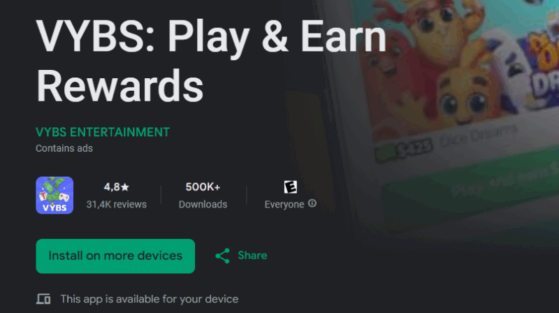 No, VYBS is not a scam. The app is free to use, doesn’t require any sketchy permissions, and has hundreds of positive reviews despite being so new. Users consistently report successful cash-outs, and the developer is active with updates and support.